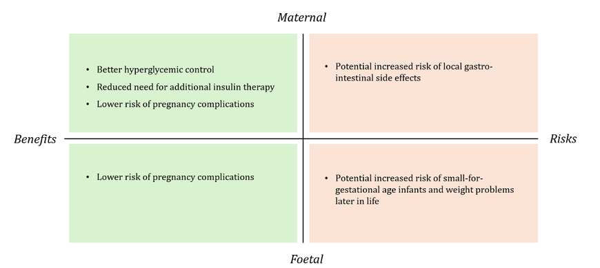 The expected benefits and associated risk of a higher maximum dose of metformin during pregnancy.